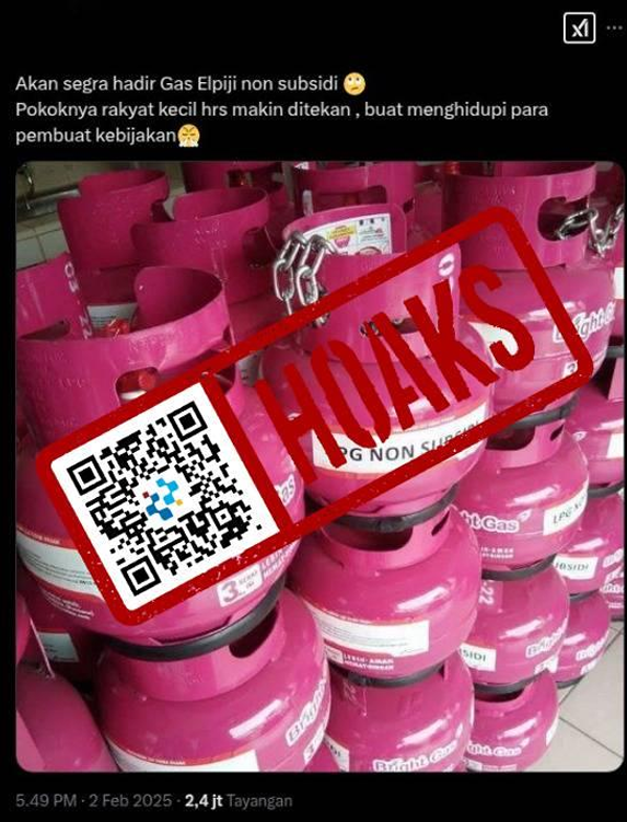 Beredar sebuah unggahan di media sosial X (Twitter) yang mengeklaim Liquefied Petroleum Gas (LPG) Bright Gas 3 kg nonsubsidi akan gantikan gas melon.
